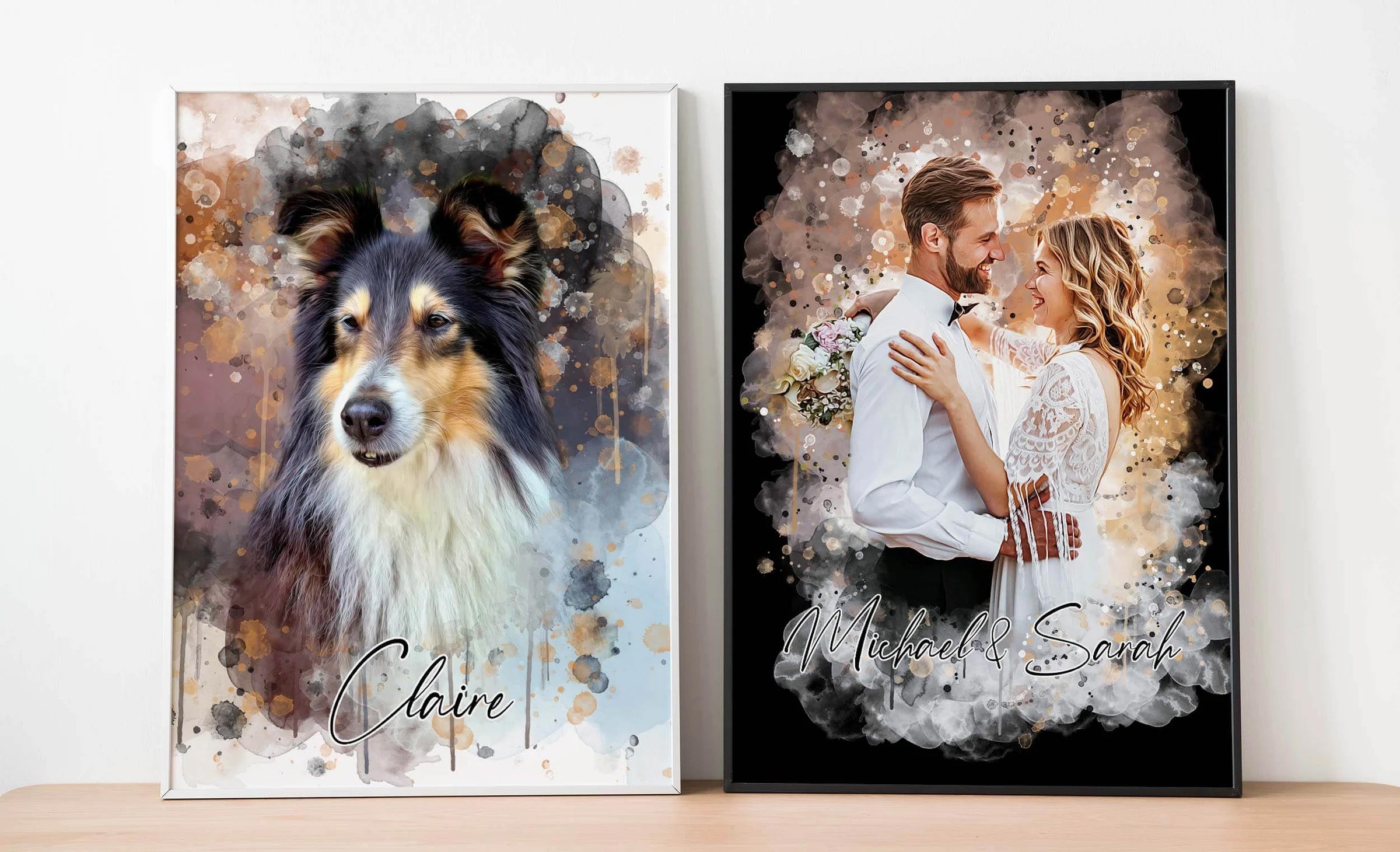 Portrait für Paare / Baby, Familie etc. im Wasserfarben-Stil